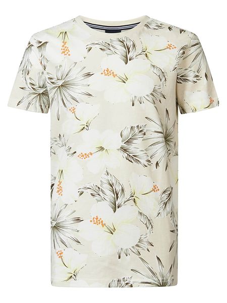 – z dodatkiem bawełny- dekolt: okrągły- krój: prosty- wzór: kwiatowy