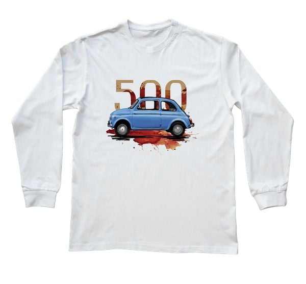 Fiat 500 — bluzka z długim rękawem (Rozmiar: 3XL (dorosła); Kolor koszulki: biały; Rodzaj nadruku: Fiat 500)