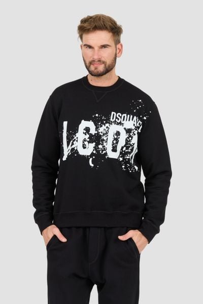 DSQUARED2 Czarna męska bluza Icon Splash Cool Fit Crewneck, Rozmiar M