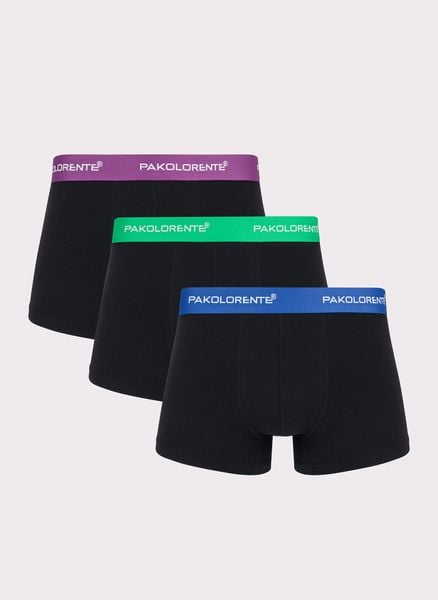 Bokserki męskie P000B-GX-002-C-0 w zestawie 3 szt. – Pako Lorente. 3-pak czarnych bokserek męskich z kolorową gumą. Basic. Skład 97% bawełna 3% elastan.