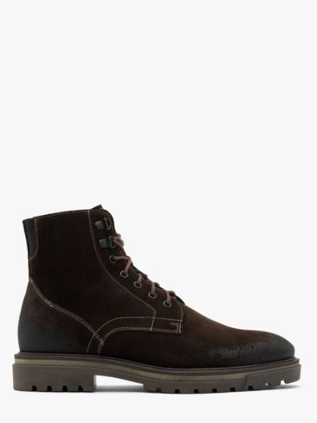 Brązowe trzewiki z weluru z kontrastowym szyciem