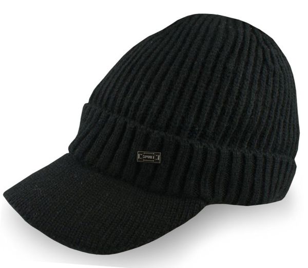 Ocieplana Czapka Dzianinowa z Daszkiem – Jarek – Czarna