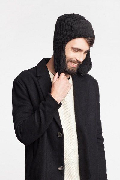 Ciemnoszara czapka męska uszatka PaMaMi. Idealna na zimowe spacery i wycieczki.