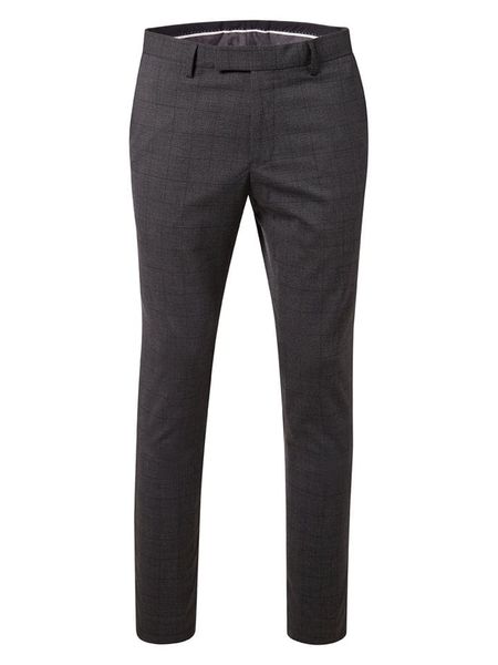 – fason: slim fit- krój nogawek: wąski- zapięcie: haczyk i suwak- szlufki na pasek: tak- kieszenie: wpuszczane i tylne- wzór: kratka