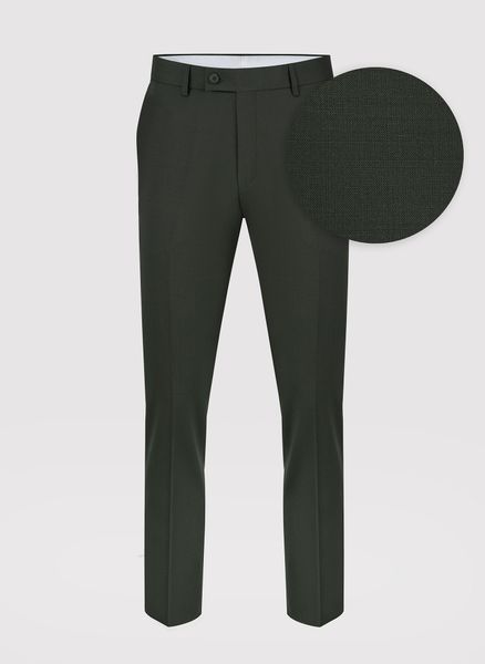 Ciemnozielone spodnie garniturowe z wełną – Pako Lorente. Zielone spodnie formalne. Spodnie w kant. Zielony garnitur. Fason Slim. Skład poliester, wełna, lycra.