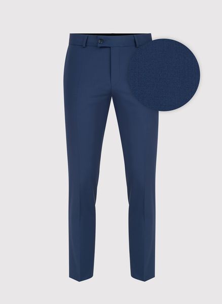 Wełniane garniturowe spodnie męskie w kolorze granatowym – Pako Lorente. Spodnie idealnie dopełnienią formalnego stroju. Skład: 100% wełna. Fason Super Slim.