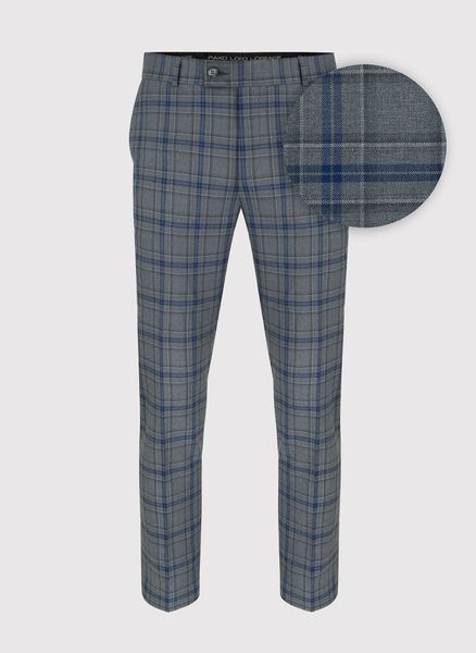 Szare spodnie garniturowe w kratkę – Pako Lorente. Linia PREMIUM. Szare spodnie formalne. Spodnie w kant. Szary garnitur. Fason Slim. Skład 100% wełna.