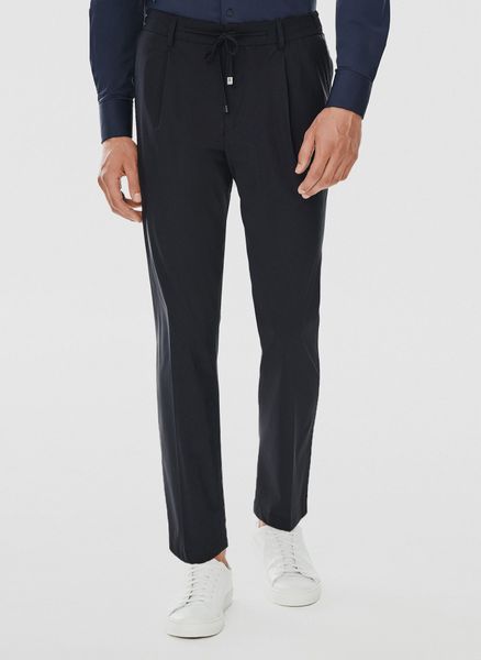 Spodnie garniturowe kolorze granatowym – Pako Lorente. Gładkie granatowe spodnie. Fason Super Slim. Kolekcja Traveler. Skład: 77% poliamid, 23% elastan.