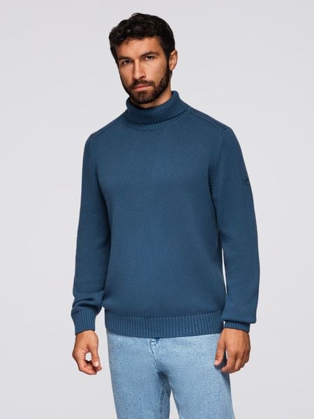 Męski golf sweter z dzianiny – ciemnoniebieski V2 – Rozmiar: XL