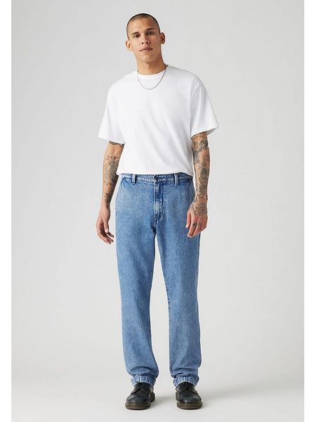 – czysta bawełna- wysokość pasa: regular waist- fason: Relaxed fit- krój nogawek: prosty- szlufki na pasek: tak- zapięcie: guzik i suwak- kieszenie: wpuszczane- naszywki: ze skóry syntetycznej- przetarcia: tak