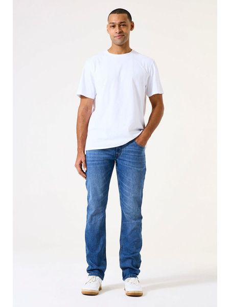 – wysokość pasa: regular waist- fason: slim fit- krój nogawek: wąski- szlufki na pasek: tak- zapięcie: guzik i suwak- kieszenie: 5 klasycznych- naszywki: ze skóry syntetycznej- przetarcia: tak