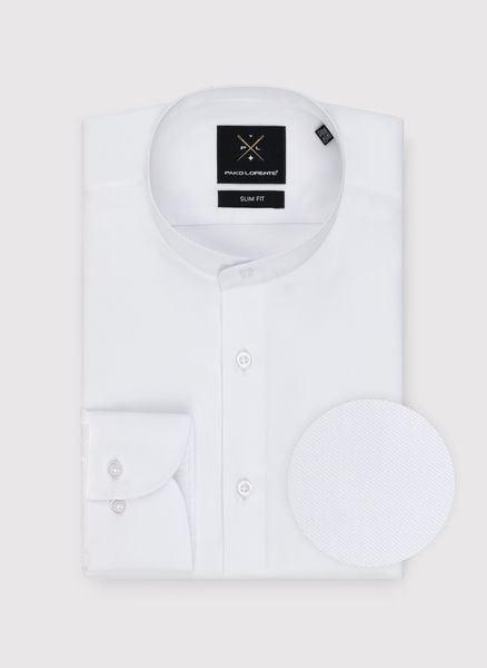 Biała koszula męska ze stójką – Pako Lorente. Koszula długi rękaw. Skład: 100% bawełna. Koszula Slim. Gładka koszula męska. Koszula z kołnierzem typu stójka. Premium.