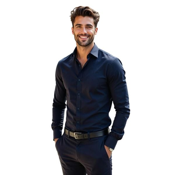 Elastyczna granatowa gładka koszula męska Y91