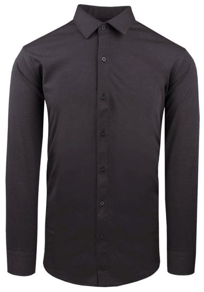 Elegancka Koszula z Dzianinowej Tkaniny – Prosty Krój – Grafit