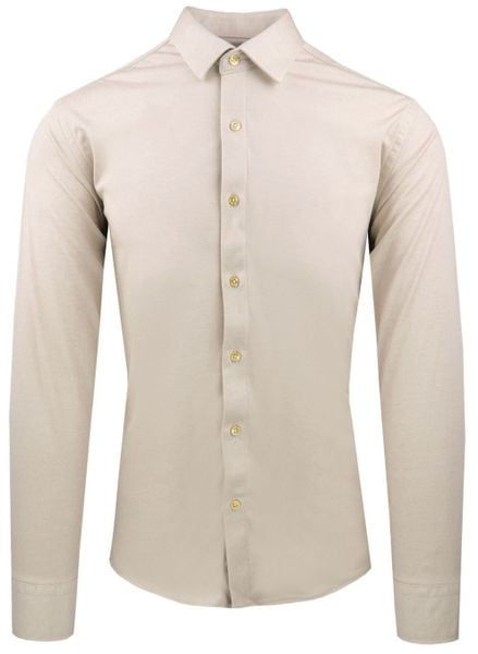 Męska Koszula z Dzianinowej Tkaniny – Krój Taliowany – Jasny Beż