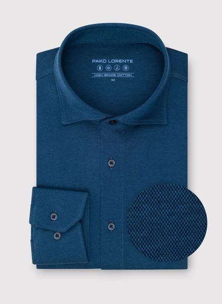 Granatowa koszula męska – Pako Lorente. Koszula z długim rękawem. Dzianinowa granatowa koszula melanż. Skład: 100% bawełna. Fason prosty. Kołnierzyk włoski.