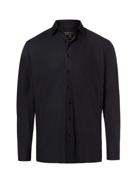 Finshley & Harding Męska koszula biznesowa – Easy Care Mężczyźni Modern Fit Bawełna (100%) czarny jednolity, 43