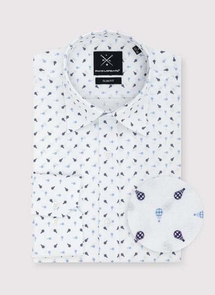 PAKO LORENTE – Biała koszula męska w drobny wzór