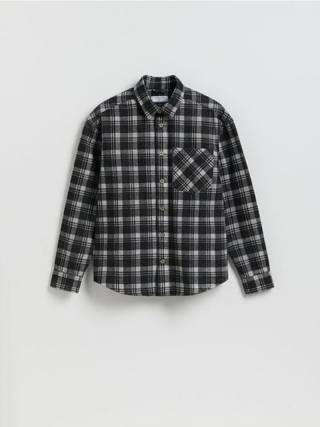 Koszula o regularnym kroju, wykonana z bawełnianej tkaniny w kratę.