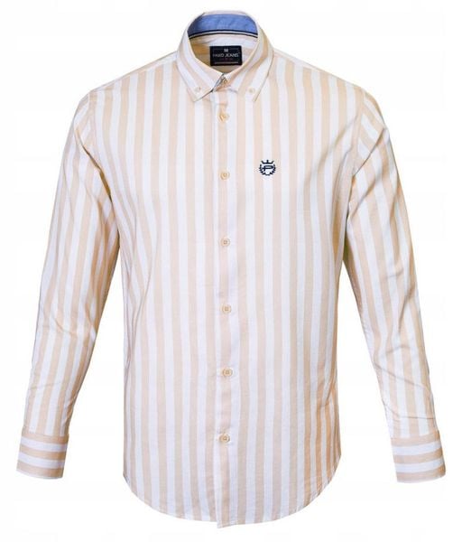 Biała, Lekko Taliowana Koszula Męska – Pako Jeans – Beżowy Prążek