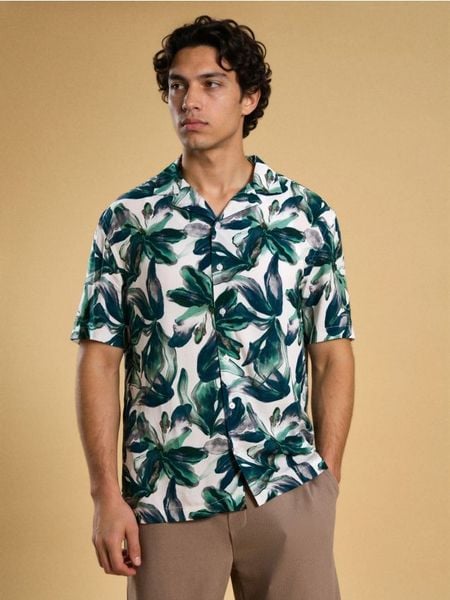 Sinsay – Wiskozowa koszula z krótkim rękawem – zielony –