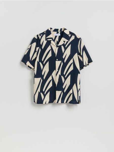 Koszula o regularnym kroju, wykonana z wiskozy i lnu.