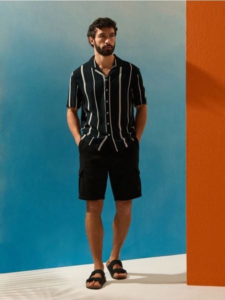 Wiskozowa koszula w paski – czarny