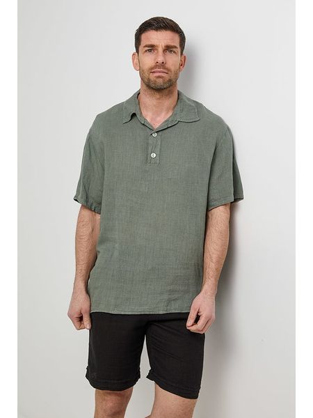 – czysty len- kołnierzyk: polo- zapięcie: skrócona listwa guzikowa- krój: luźny- look: jednokolorowy
