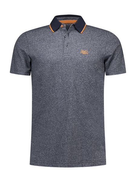 – kołnierzyk: polo- zapięcie: skrócona listwa guzikowa- krój: prosty- wzór: melanżowy