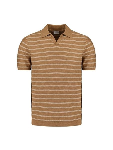 Męska bawełniana koszulka polo ze strukturalnej dzianiny – jasnobrązowa V3
