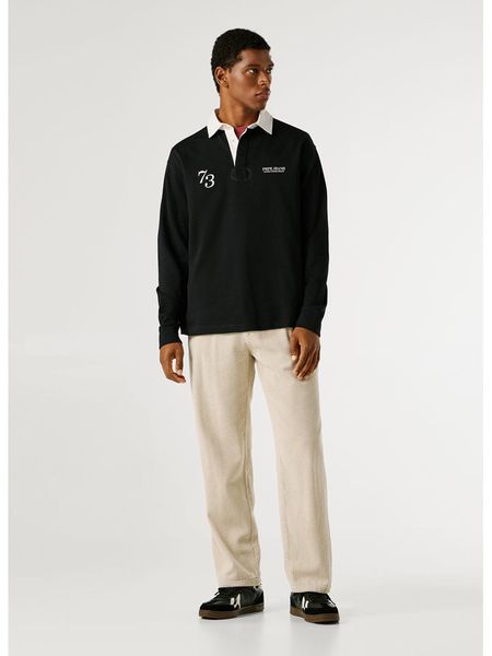 – czysta bawełna- kołnierzyk: polo- zapięcie: skrócona listwa guzikowa- długość rękawa: długi- krój: prosty- detale: haft z logo- look: jednokolorowy