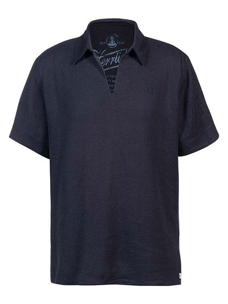 – z dodatkiem lnu- kołnierzyk: polo- detale: haft z logo- krój: prosty- look: jednokolorowy
