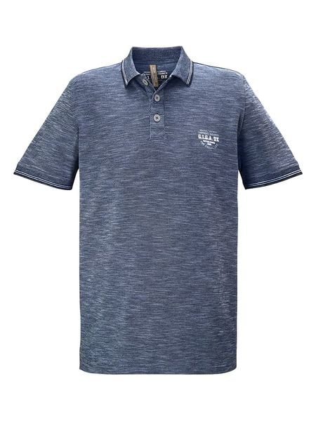 – kołnierzyk: polo- zapięcie: skrócona listwa guzikowa- detale: haft z logo, kontrastujące paski- krój: prosty- wzór: melanżowy
