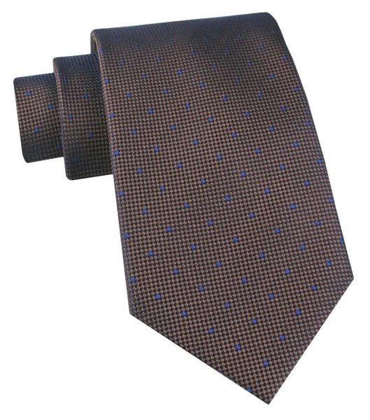 Jedwabny Krawat Męski – His Story – Brąz w Drobny Groszek
