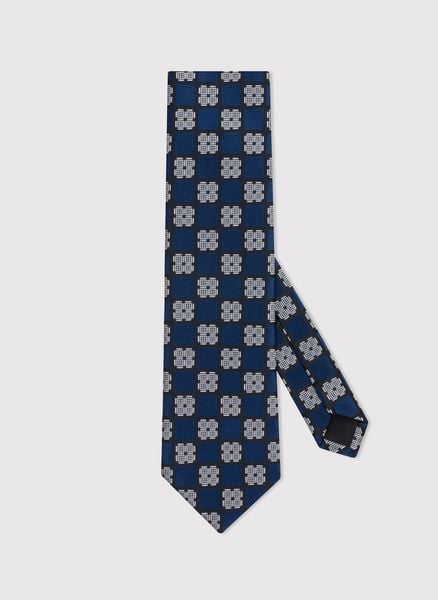 Krawat męski we wzór geometryczny – Pako Lorente. Granatowy wzorzysty krawat. Skład: 100% poliester.