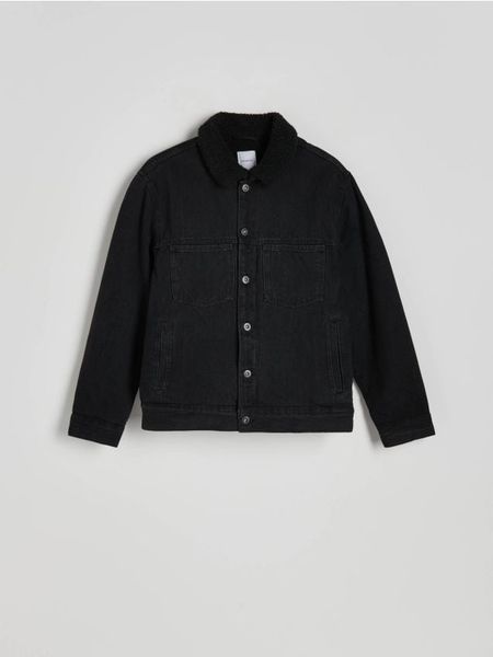 Jeansowa kurtka sherpa – czarny
