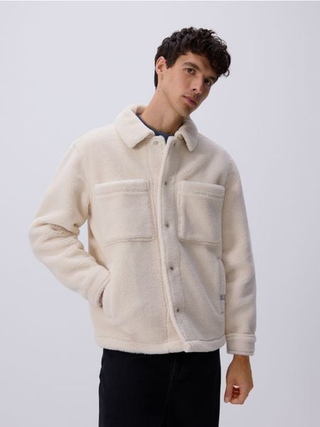Kurtka sherpa z kołnierzem – złamana biel
