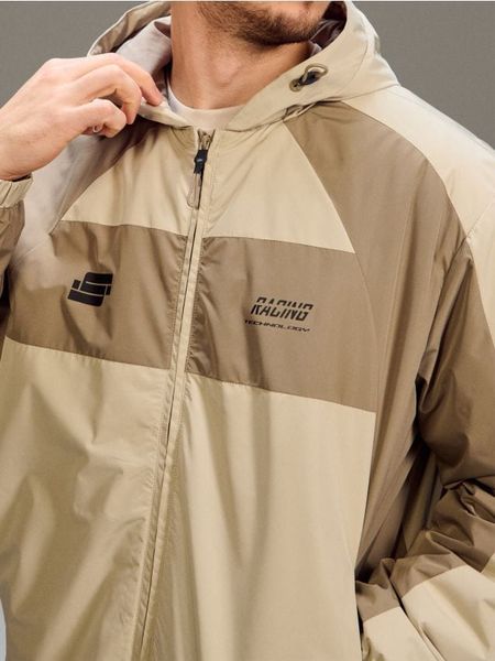 Wodoodporna kurtka color block z kapturem – kremowy