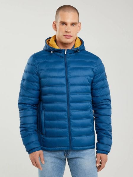 Kurtka męska pikowana z kapturem niebieska Acarf 402