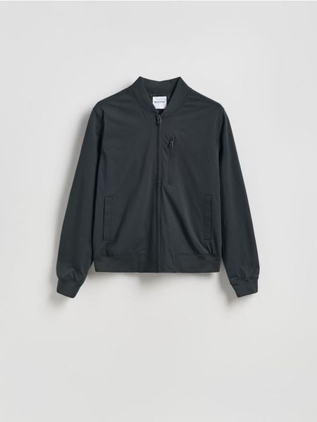 Kurtka typu bomber, wykonana z gładkiego materiału.