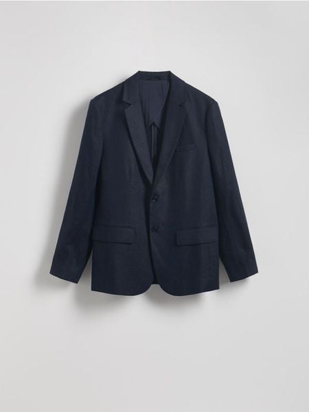 Lniana marynarka regular fit – granatowy
