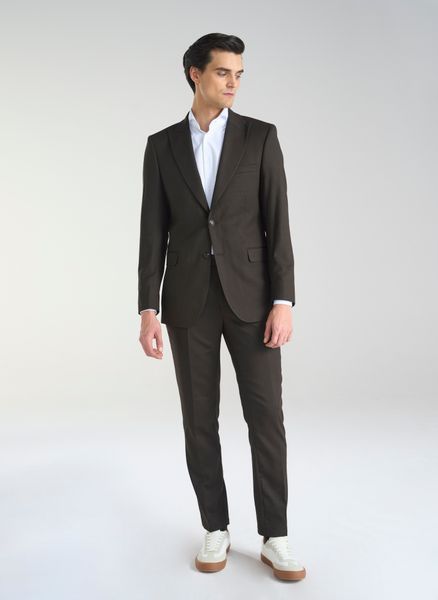 Brązowa jednorzędowa marynarka męska – Pako Lorente. Męska marynarka z dwoma guzikami. Taliowana marynarka. Ciemnobrązowa marynarka na podszewce.