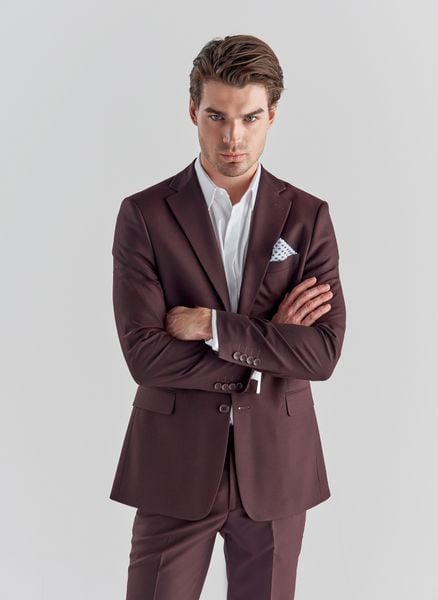 Marynarka męska garniturowa Pako Lorente. Bordowa marynarka. Marynarka na Walentynki. Jednorzędowa marynarka o kroju Slim Fit. Skład:poliester, wiskoza, elastan