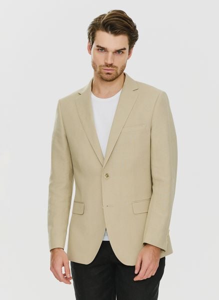 Lniana marynarka męska w kolorze oliwkowym – Pako Lorente. Skład: 55% len, 33% poliester, 12% wiskoza. Męska marynarka. Marynarka smart casual.
