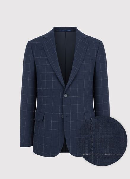 Granatowa marynarka męska – Pako Lorente. Męska marynarka w kratkę. Casualowa marynarka. Marynarka z podszewką. Skład: 83% poliester, 15% wiskoza, 2% elastan.