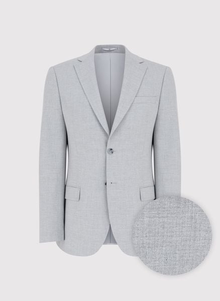 Marynarka garniturowa męska – Pako Lorente. Jasnoszara marynarka męska. Fason: Slim. Jasna marynarka z podszewką. Skład: 66% poliester, 32% wiskoza, 2% elastan. Jasny garnitur dla Pana Młodego.