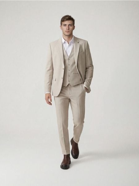 Marynarka regular z dodatkiem wiskozy – beżowy
