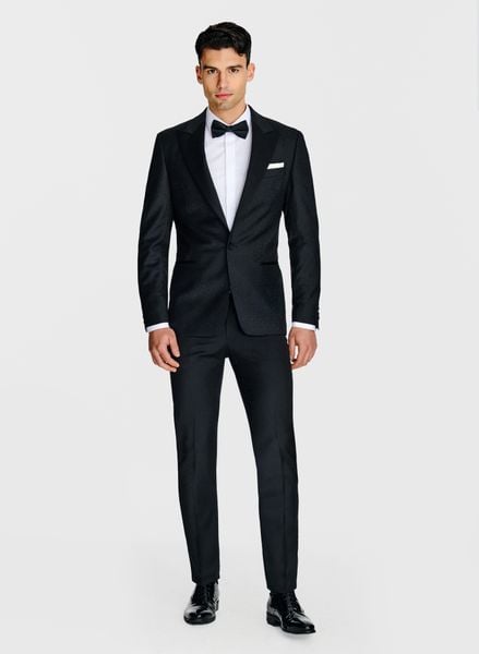 Żakardowa marynarka smokingowa – Pako Lorente. Czarna marynarka smokingowa. Marynarka jednorzędowa. Wełniany smoking. Smoking na ślub. Fason Slim. PREMIUM.