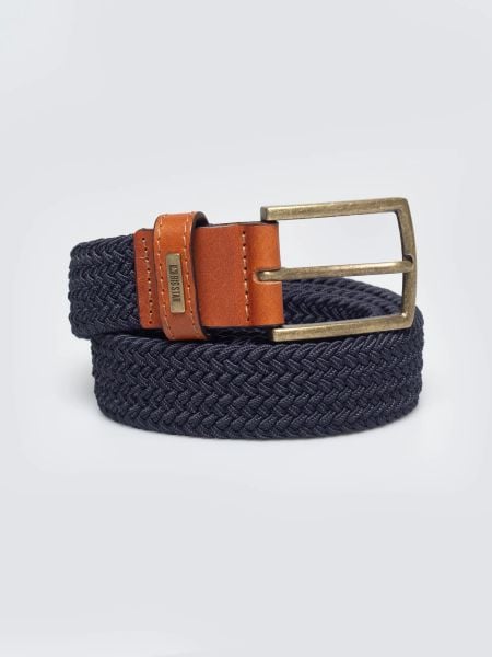 Pasek męski pleciony ze skórzanymi wstawkami granatowy Abris 403