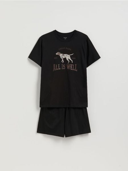 Dwuczęściowa piżama z nadrukiem – czarny